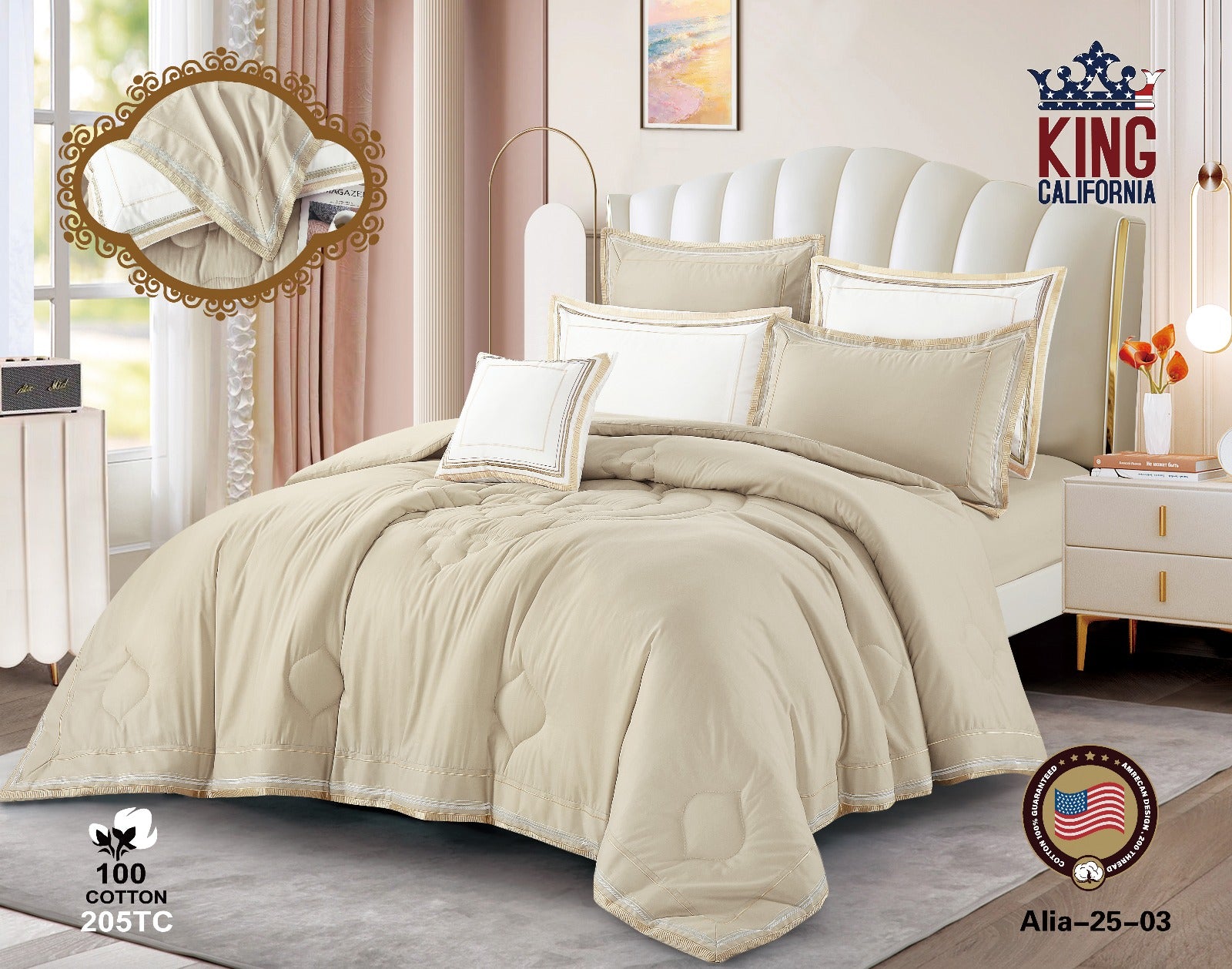 أضف لمسة من الفخامة والرقي لغرفة نومك مع طقم ديباج عليا الجديد من كنج كاليفورنيا. تصميم أنيق مطرز بدقة،