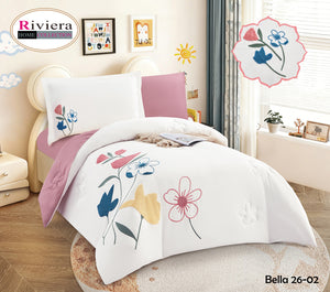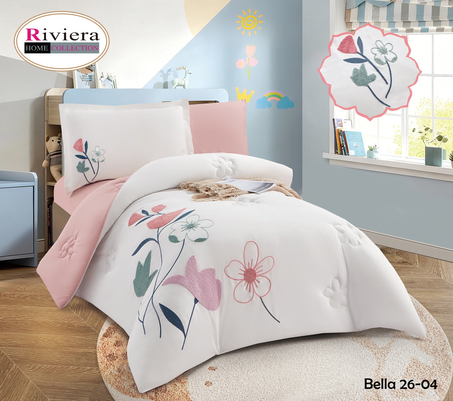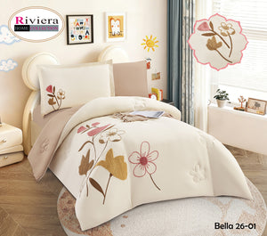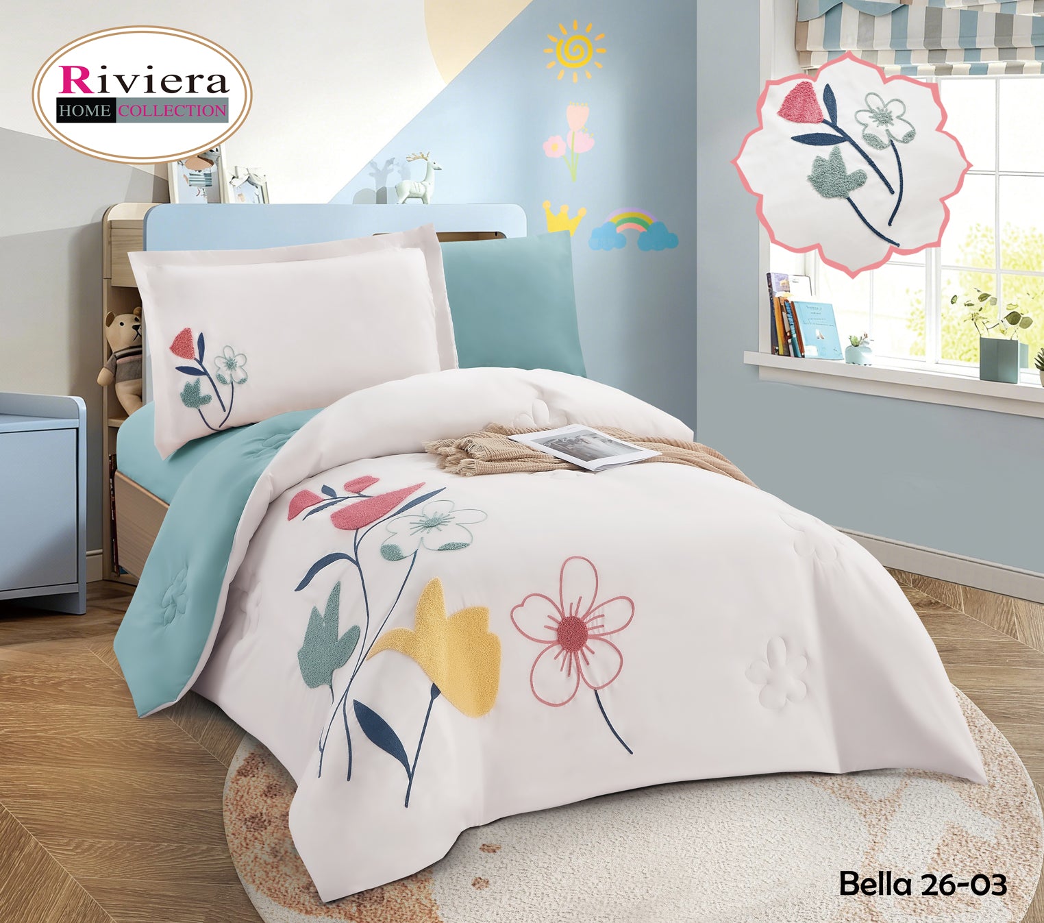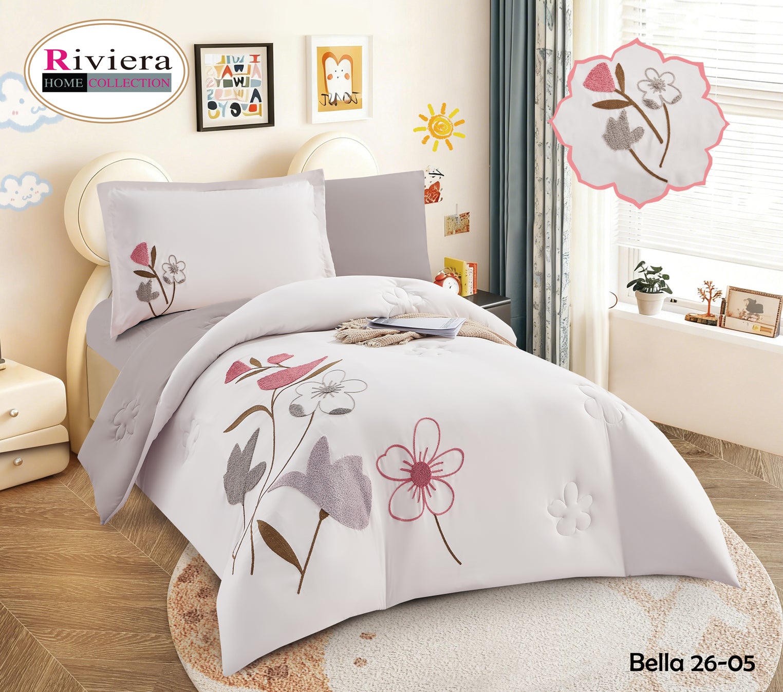 طقم ديباج ريفييرا بيلا الصيفي يجمع بين الأناقة والراحة ليمنح غرفة النوم لمسة ناعمة وعصرية. يتميز بتصميم أنيق مع تطريزات زهور ناعمة تضيف إحساساً بالحيوية والهدوء. خامة القماش مريحة وخفيفة، مثالية للاستخدام اليومي خصوصاً في الأجواء الصيفية.