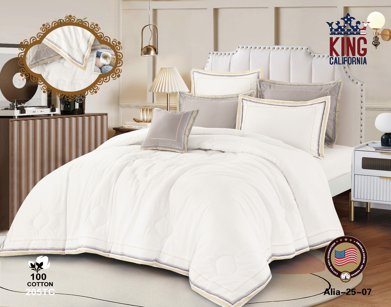 Add a touch of luxury and elegance to your bedroom with the new Alia Bedding Set from King California. Featuring a refined embroidered design, it combines sophisticated style with top-tier quality.