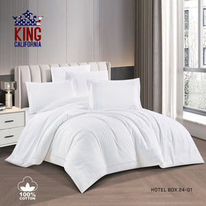 The "HOTEL BOX" set by King California is crafted from the finest 100% Cotton – 300 Thread Count, offering luxurious softness and long-lasting quality.